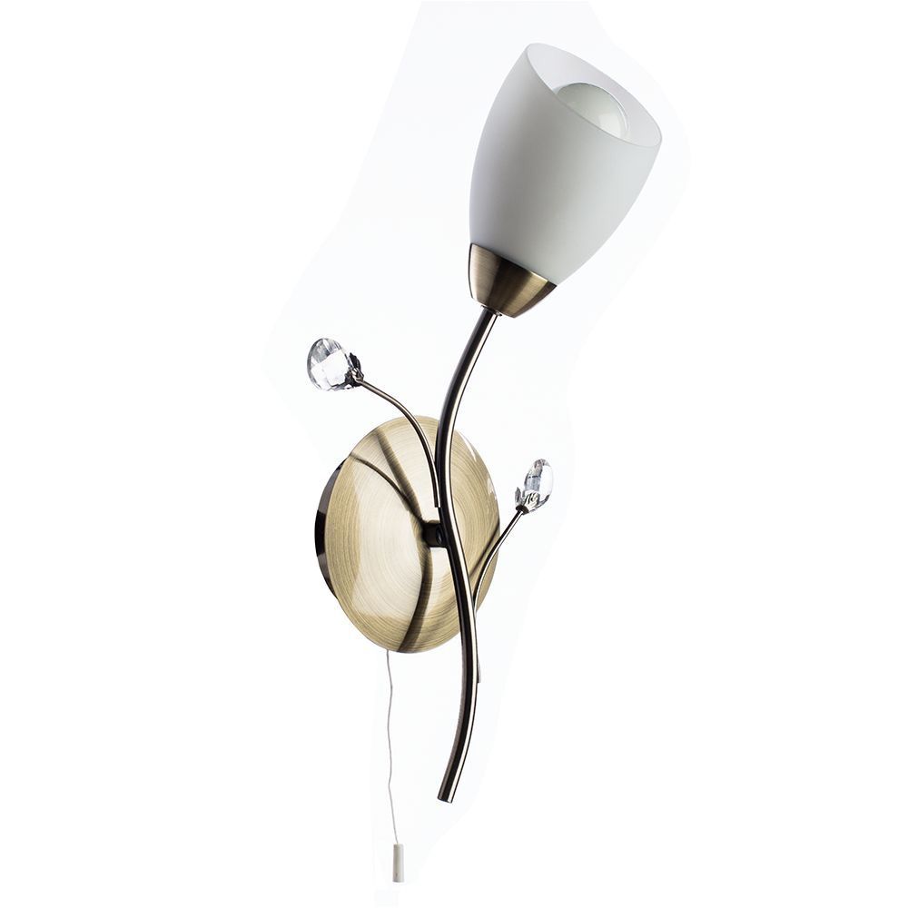 Очаровательный внешний вид модели A2766AP-1AB привлекает внимание. Цвет металла «старая бронза» придает светильнику солидность и благородство. Светлый плафон немного «уравновешивает» конструкцию, прибавляя ей легкости и нежности. Для оживления интерьера гостиной подойдет бра в форме любого элемента природы.