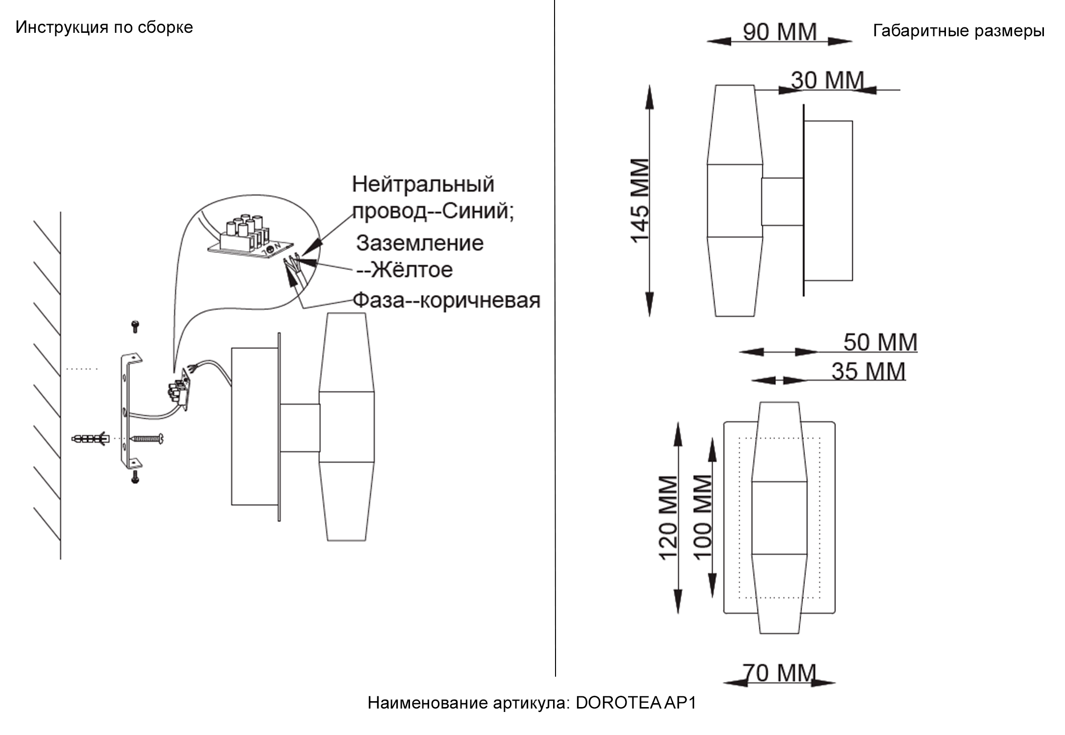| Размер светильника от стены (мм) | 90 |