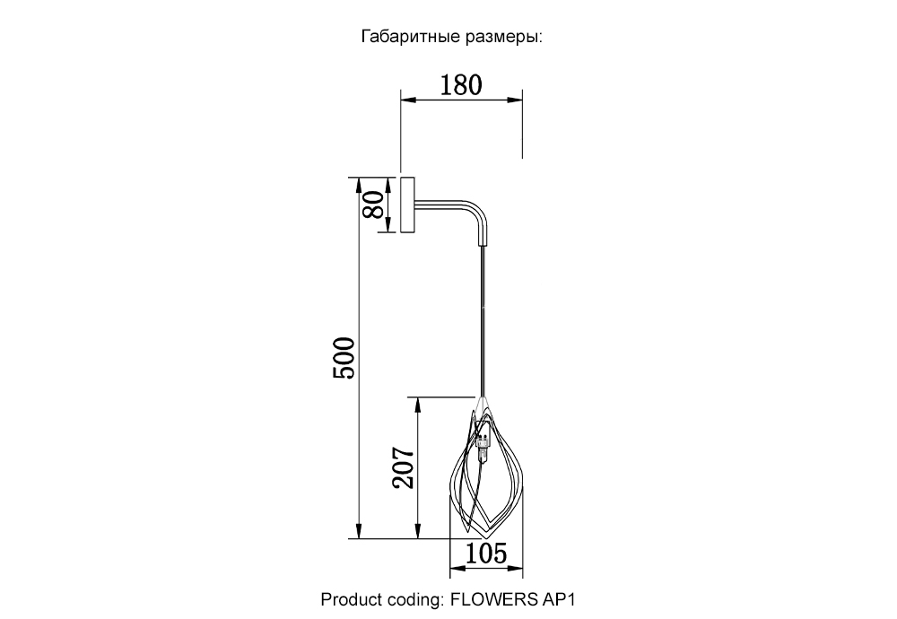 | Размер светильника от стены (мм) | 180 |