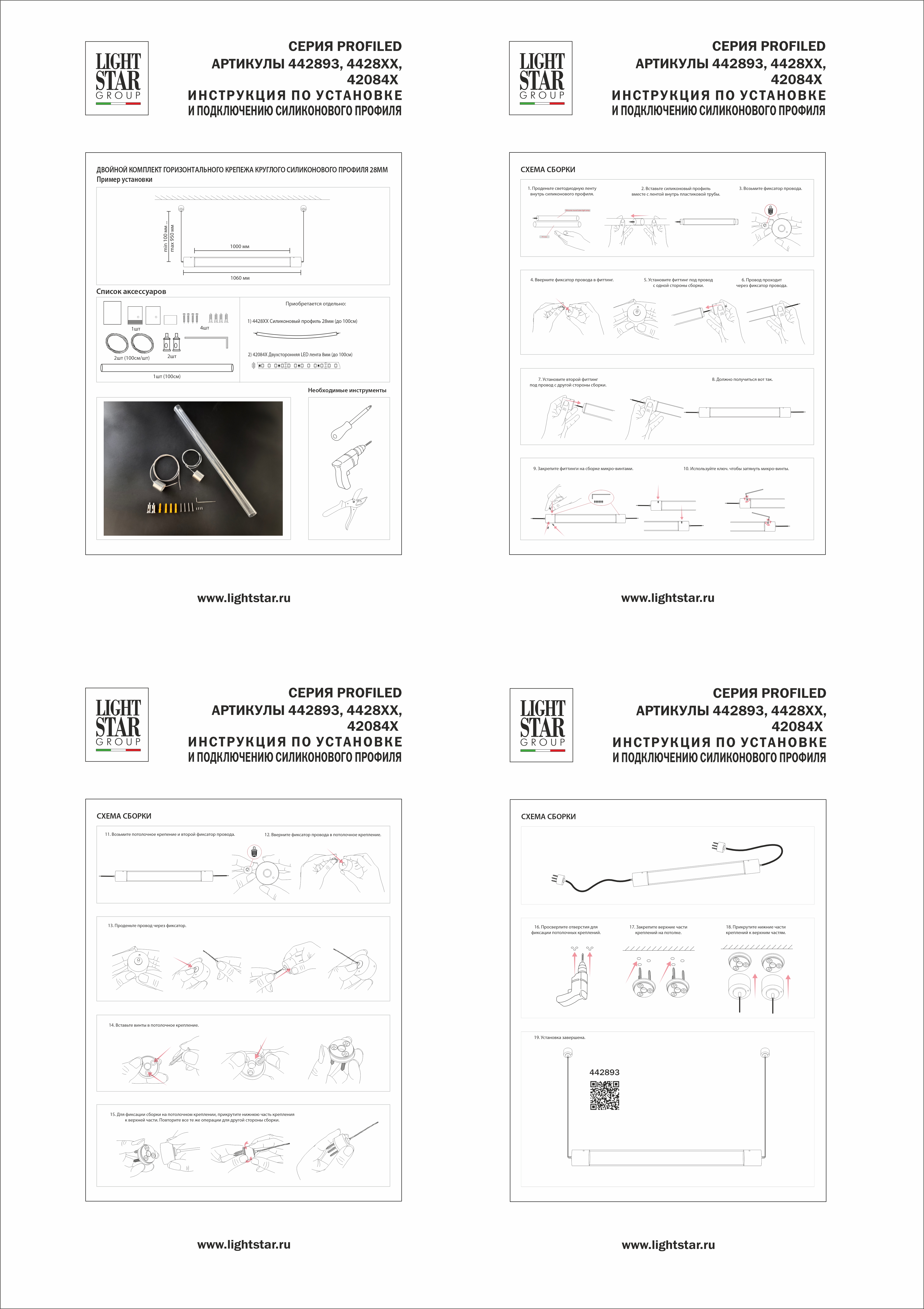 Комплект подвесного гориз крепежа двойной Profiled круглого силикон профиля 4428хх с PVC трубкой Profiled Lightstar 442893