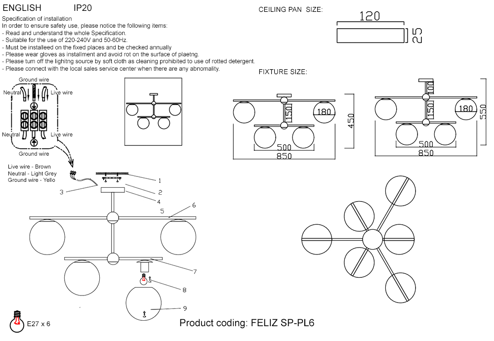 | Количество ламп, шт | 6 |