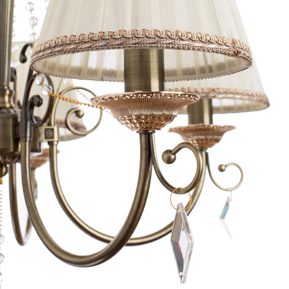 Великолепная модель A6021LM-5AB от итальянской компании Arte Lamp относится к коллекции 34 и отлично подойдет для установки на потолок спальни, оформленной в стиле арт-деко. Подвесная люстра Arte Lamp 34 A6021LM-5AB с конусными плафонами осветит помещение площадью 11.1 кв. м. Производитель Arte Lamp рекомендует использовать для устройства лампы накаливания с цоколем E14 и мощностью 40 W. Прибор произведен с использованием материалов: текстиль, металл и ткань и может использоваться для натяжного потолка. Основным цветом товара является белый и бронзовый. Подвесная люстра A6021LM-5AB продается по цене 11550 руб. Торопитесь сделать заказ в интернет-магазине Дом Декора.