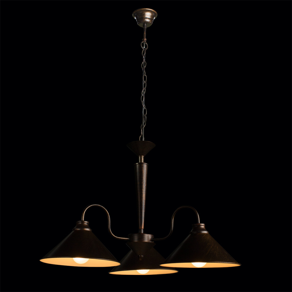 Феноменальная модель A9330LM-3BR от итальянской компании Arte Lamp относится к коллекции Cone и отлично подойдет для установки на потолок кухни, оформленной в стиле лофт. Подвесная люстра Arte Lamp Cone A9330LM-3BR с конусными плафонами осветит помещение площадью 10 кв. м. Производитель Arte Lamp рекомендует использовать для устройства лампы накаливания с цоколем E27 и мощностью 60 W. Прибор произведен с использованием материала: металл и может использоваться для натяжного потолка. Основным цветом товара является коричневый. Подвесная люстра A9330LM-3BR продается по цене 10350 руб. Торопитесь сделать заказ в интернет-магазине Дом Декора.