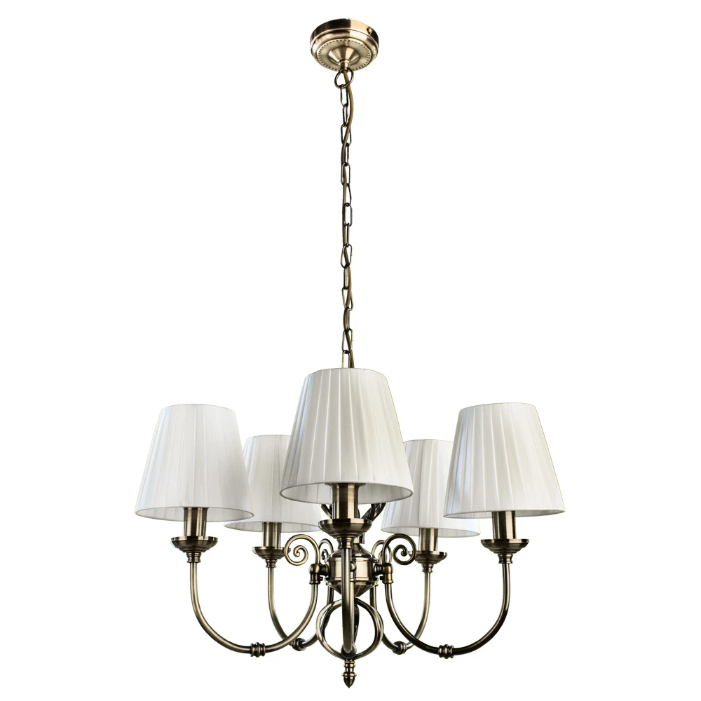 Выдающаяся модель A8390LM-5AB от итальянской компании Arte Lamp относится к коллекции Zanzibar и отлично подойдет для установки на потолок спальни, оформленной в стиле модерн. Подвесная люстра Arte Lamp Zanzibar A8390LM-5AB с конусными плафонами осветит помещение площадью 11.1 кв. м. Производитель Arte Lamp рекомендует использовать для устройства лампы накаливания с цоколем E14 и мощностью 40 W. Прибор произведен с использованием материалов: текстиль, металл и ткань и может использоваться для натяжного потолка. Основным цветом товара является белый и бронзовый. Подвесная люстра A8390LM-5AB продается по цене 21500 руб. Торопитесь сделать заказ в интернет-магазине Дом Декора.